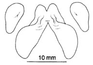 - Ventral pads of funnel organ about half as long as each rami of dorsal pad.