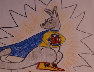 Aussie hadn’t had to do a lot to save Eastern Australia. It seemed to be running smoothly without his intervention. Until, using his heightened senses, he saw flames coming from miles away. He could smell the fire burning and even hear the cries of the other kangaroos. He threw on his boots and suit and became Super-Aussie! He jumped as fast as he could over towards the chaos. It was quite the trek! There were mounds of dirt, rivers and streams, forests and logs. He had to jump over a fence that was almost 10 feet tall. Finally he arrived at the site of the fire and saw that all of the kangaroos were trapped. Then out of the corner of his eye, he saw the big herbivore trapped in the fire, quivering with fear. The big herbivore cried out “I’m sorry! I didn’t mean to! I just wanted to have a campfire tonight! Help me!” Because the grass grew so long, it caught fire and spread extremely quickly. It was out of control! So Super-Aussie pulled out his ‘Fire Tamer’ and managed to put out all the fire. He broke through the wall of fire and managed to save all the creatures trapped in the grass. They were all very thankful.